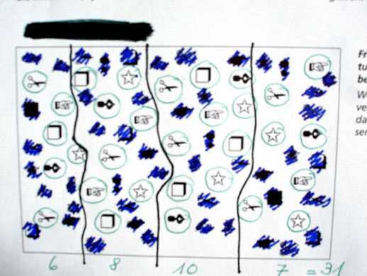 Am Schluss werden die verbliebenen Modellzeichen umrahmt und gleichzeitig gezählt.